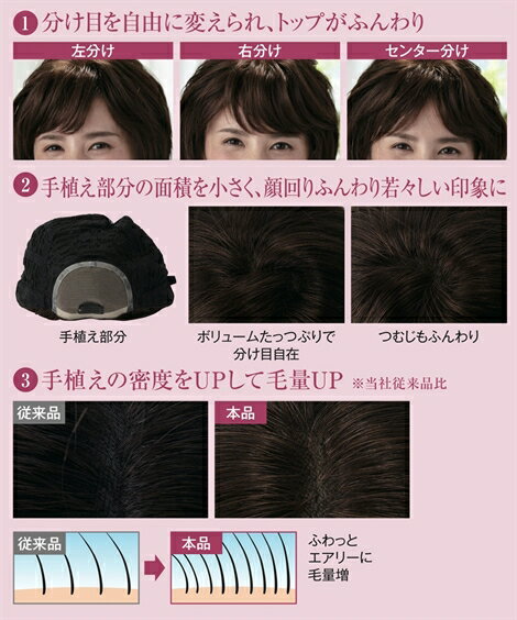 ※手植え部の毛量がふえた為、初めての着用の際はハンドブロー等で分け目を調整してください。