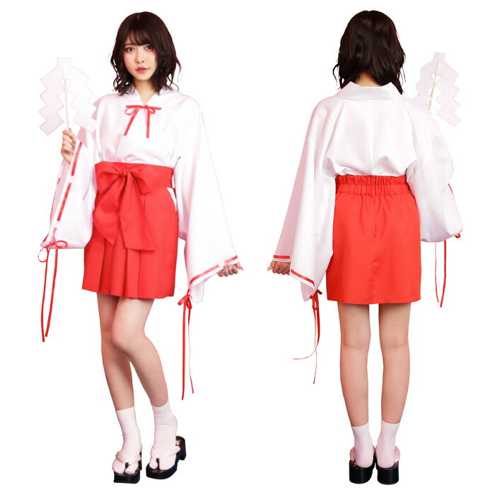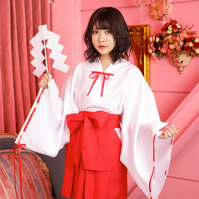 送料無料 ミニリボン巫女 巫女 みこ 着物 和服 和装 巫女装束 白衣 袴 御幣 赤 レッド 白 ホワイト ミニ スカート ワンピース セット 一式 神子 舞姫 まいひめ 神主 神社 レディース 大人 かわいい セクシー 巫女コス コスプレ コスチューム ハロウィン 衣装 仮装 s-cs-6j816