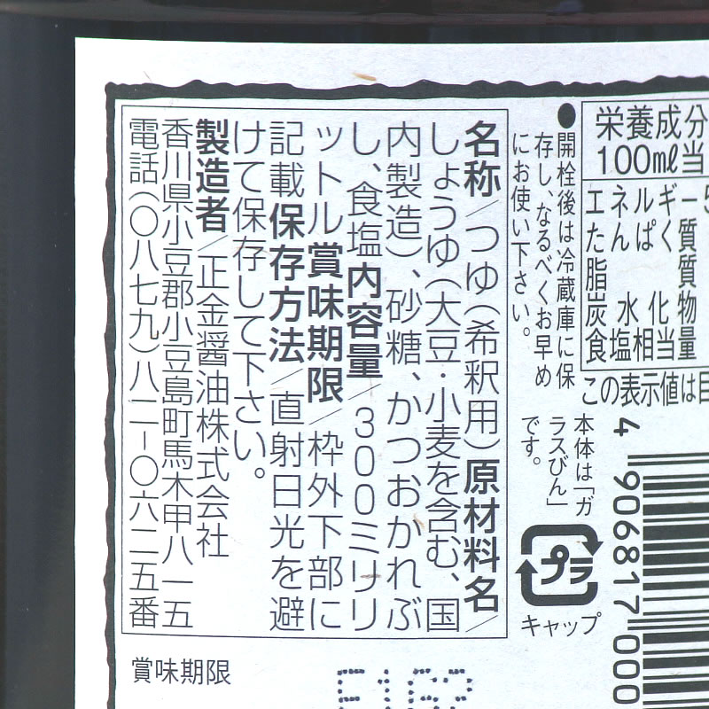 正金醤油 つゆ 300ml【 正金醤油 めんつゆ そうめんつゆ つゆ 小豆島 無添加 醤の郷 】