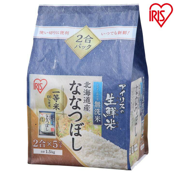 【令和3年産】アイリスの生鮮米 無洗米 北海道産ななつぼし 1.5kg 2合×5パック アイリスオーヤマななつぼし 無洗米 生鮮米 米 小袋 パック コメ 白米 1.5キロ 【DEAL】