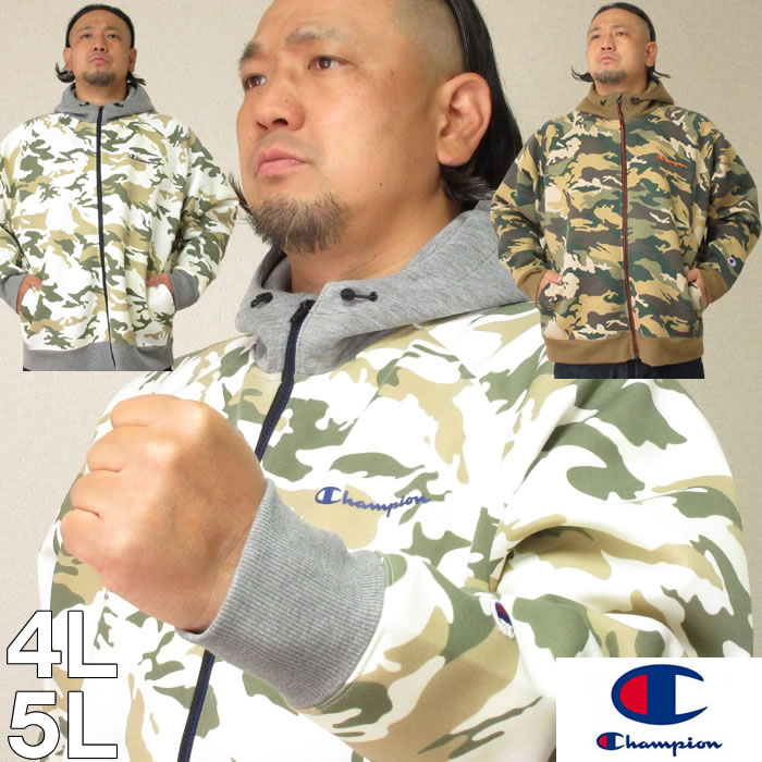 (SALE価格設定) 大きいサイズ メンズ Champion(チャンピオン)カモフラジップパーカー(当店在庫分)4L 5L