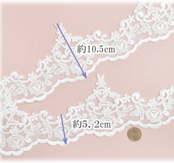 )【1m単位カット販売】ウェディングチュールレース 約105mm幅ウェディングに使える豪華なレースチュール生地に上から縫いつけるだけでベールができます。