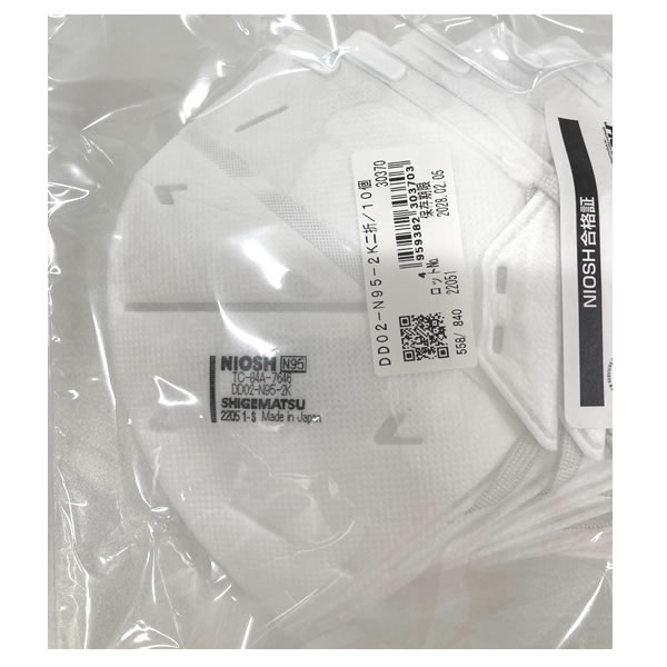 商品の特徴 シゲマツ N95マスク DD02-N95-2K二折/10個 ラムダ形になった保形テープが立体構造をしっかりキープ! 3つの機能(アジャスター、クッション、鼻当て)で漏れなく安全。